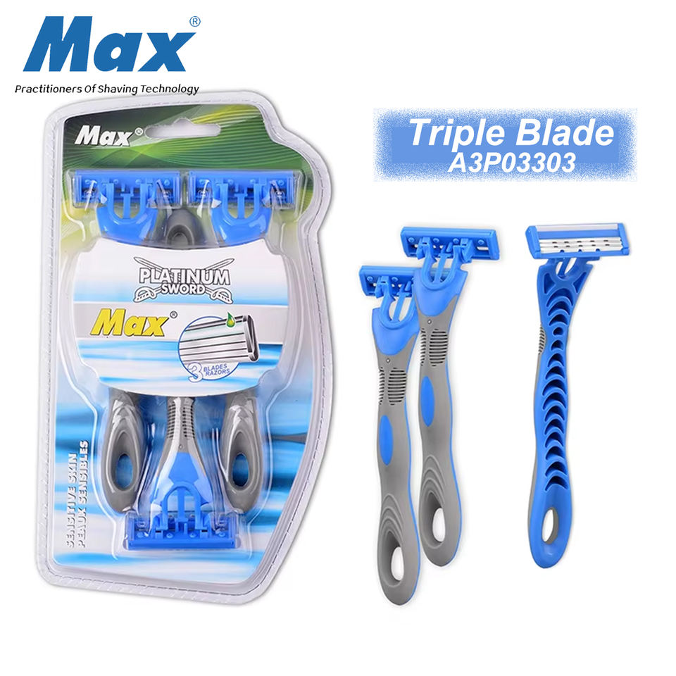 MAX Factory Custom Logo Plastic Handle Blue Triple Blade Disposable Shaving Razor Blades for Men