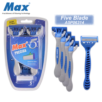 MAX Product Manufactur Custom Logo Blister Package 5 Blade Disposable System Shaving Razor for Men with Dual Lubrication